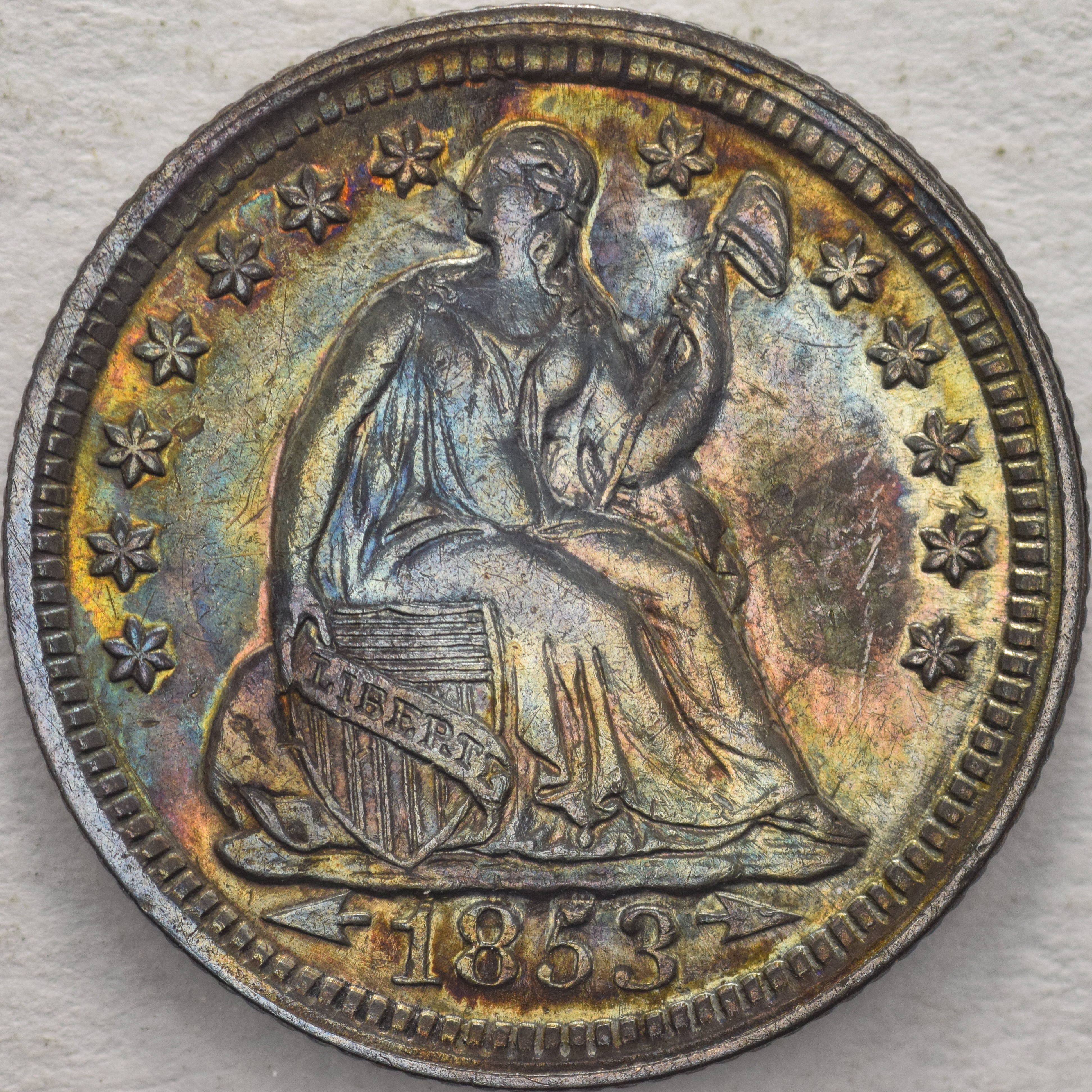 1853 Seated Liberty Half Dime, With Arrows, Clashed Dies