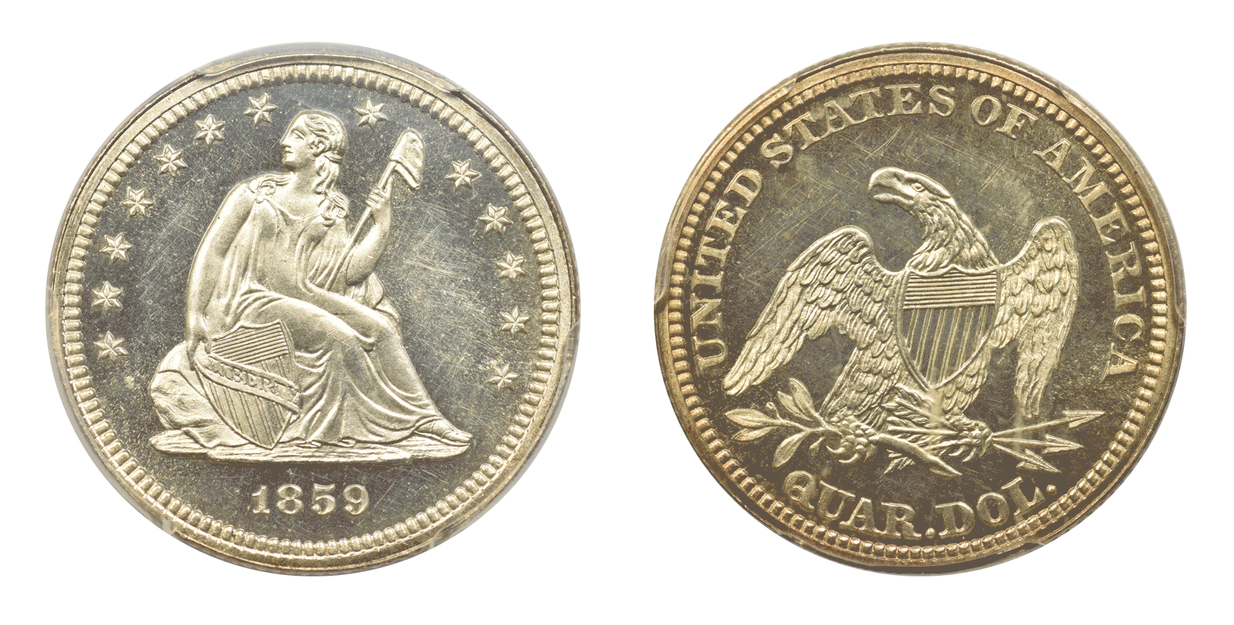 1859 Seated Liberty Quarter Dollar, Proof